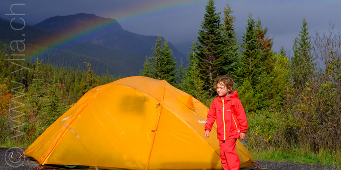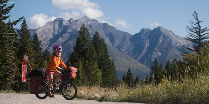 The girls are in perfect harmony with everything that surrounds them. They play in turquoise lakes or crystalline streams. They jump in puddles, wet, frozen, but light-hearted. They watch the hanging glaciers and marvel at the wildlife we encounter, like the elk. They play in the boreal forest, run around the trees and stand speechless in front of the sumptuous panoramas that unfold.